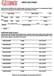 Fill out the obituary form, save it, and either email (gleaner@atlanticunion.org)